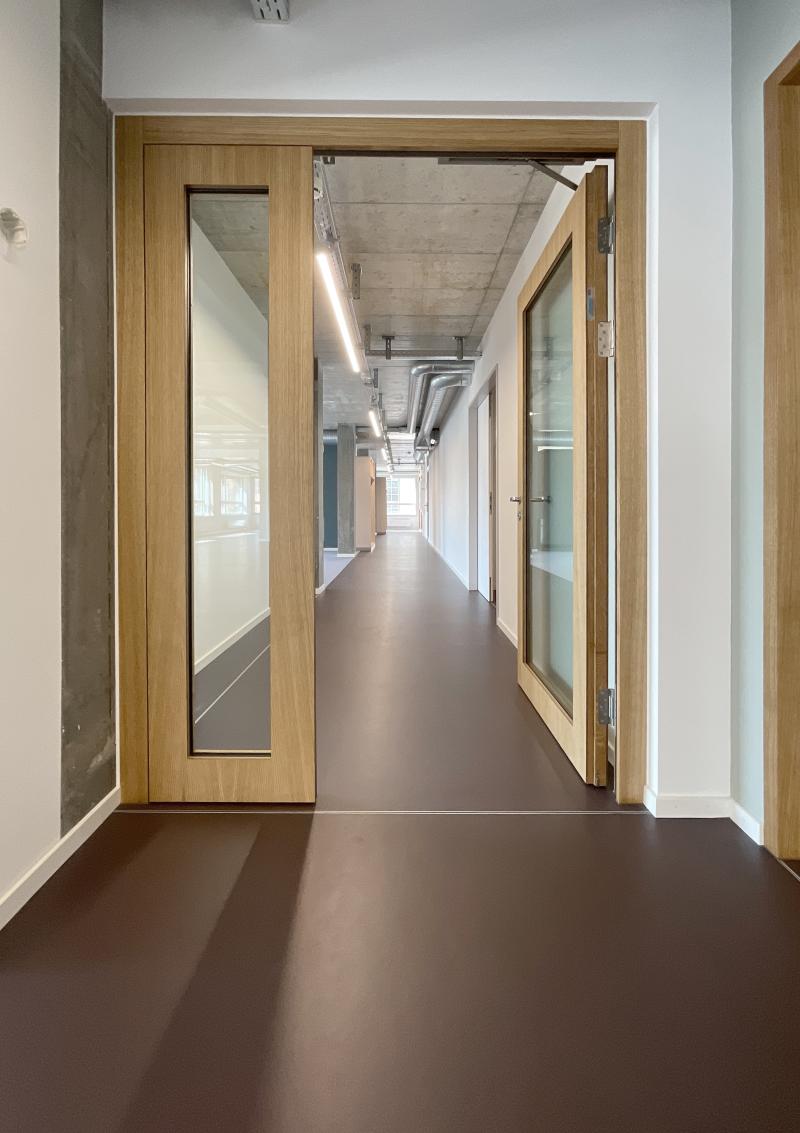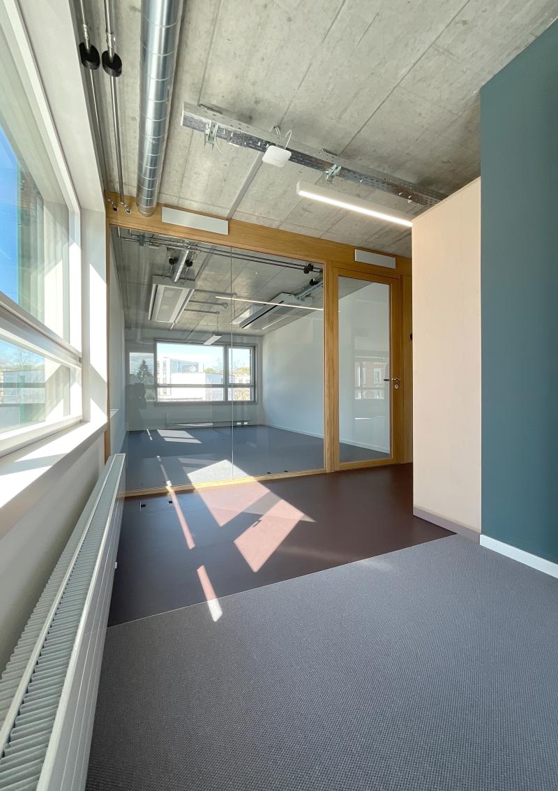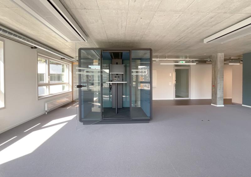 Für die grösste und eine der ältesten Zürcher Baugenossenschaften, die ABZ (Allgemeine Baugenossenschaft Zürich), realisieren wir den Ausbau einer Etage des Hochhauses Hoch3 in Zürich-Wiedikon an der Kreuzung Gut- und Birmensdorferstrasse, nur wenige hundert Meter vom bestehenden Hauptsitz in der Gertrudstrasse entfernt. Die als Open Office gestaltete Arbeitswelt dient als Büroerweiterung und Ausweichstandort, um den wachsenden Geschäftstätigkeiten der Genossenschaft neuen Raum zu geben. Ergänzt wird die flexible Arbeitsfläche durch eine Küche, Garderobe, hochschallisolierte Besprechungsräume sowie «Silent Boxes» für Telefonate und Calls. Geheizt und gekühlt wird über Hybrid-Deckensegel, die zugleich die akustischen Anforderungen erfüllen. Zentrales Anliegen der ABZ ist eine attraktive, wertige und langlebige Arbeitsumgebung, die weder abgehoben noch luxuriös wirken darf. Der Raum vereint Funktionalität, Wohlbefinden und eine angenehme Arbeitsatmosphäre.
