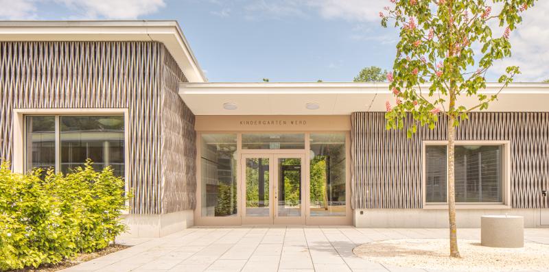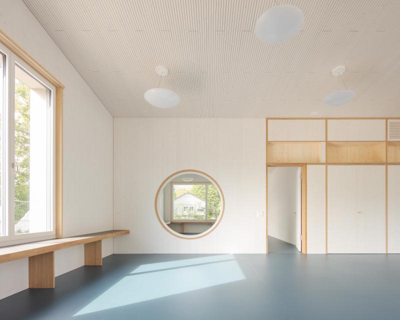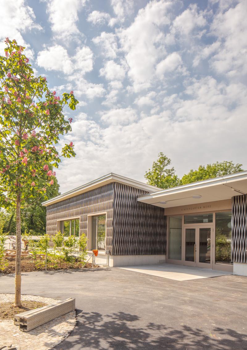 Der Kindergarten ist ein nachhaltiger Holzbau mit Minergie-Eco-Zertifizierung.