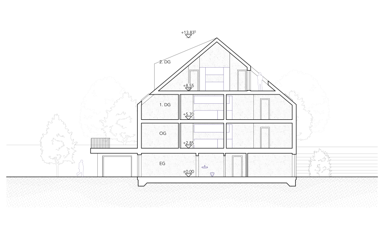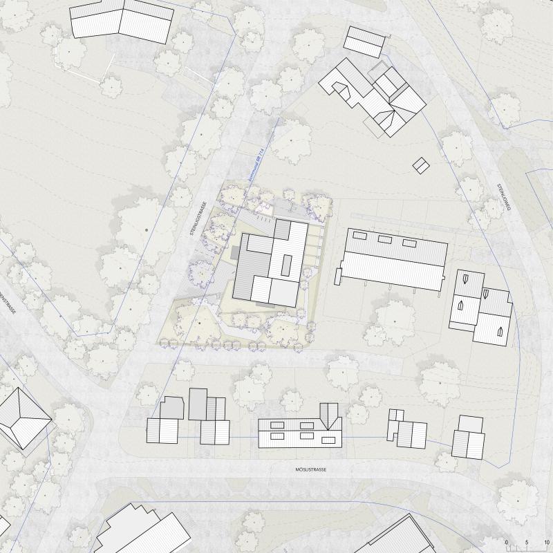 Fein gegliederte Volumen und terrassierte Freiräume