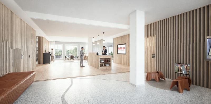 Der neu gestaltete Innenraum zeichnet sich durch eine grosszügige, helle Kundenzone zwischen strassenseitiger Fassade und Wintergarten aus.