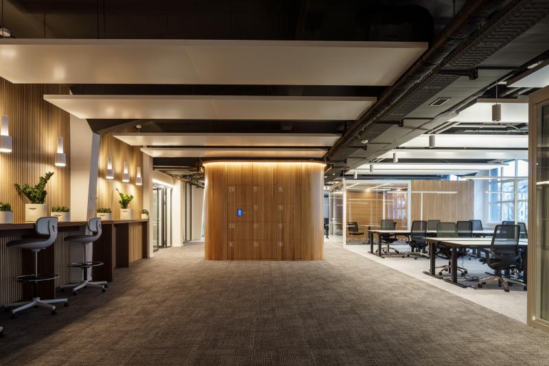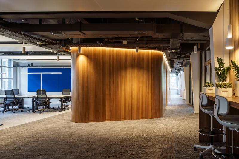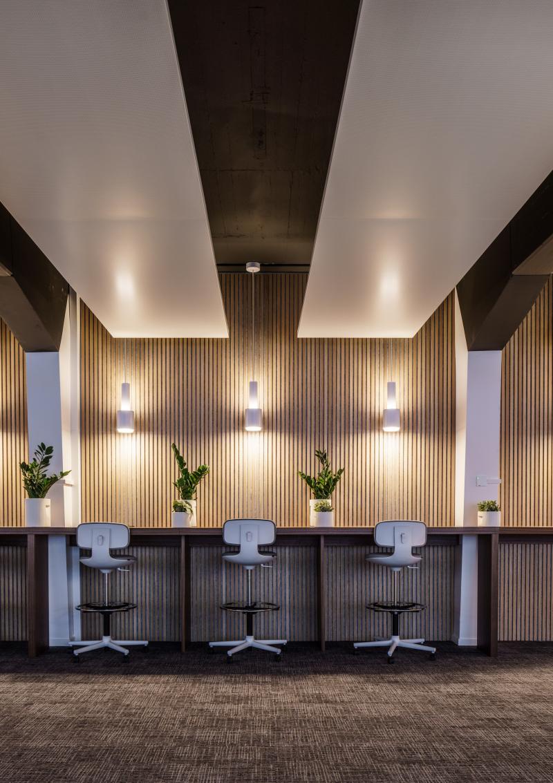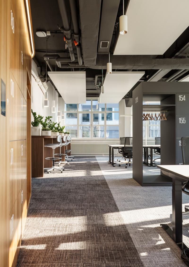 Offene, helle Arbeitsbereiche gehen fliessend in gedimmte Aufenthaltszonen über und schaffen eine Balance aus Funktionalität und Aufenthaltsqualität.